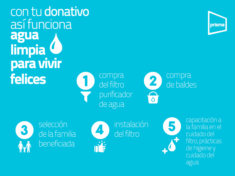 Este es un proyecto abierto que Prisma pone a disposición de todos los que quieran participar, a través de donaciones que permitan implementarlo y llevar agua limpia a las familias que más necesitan.