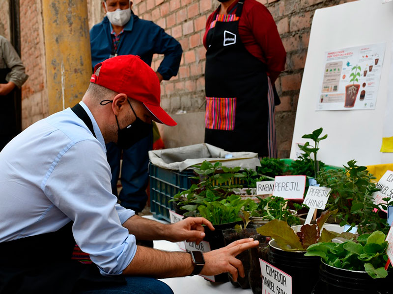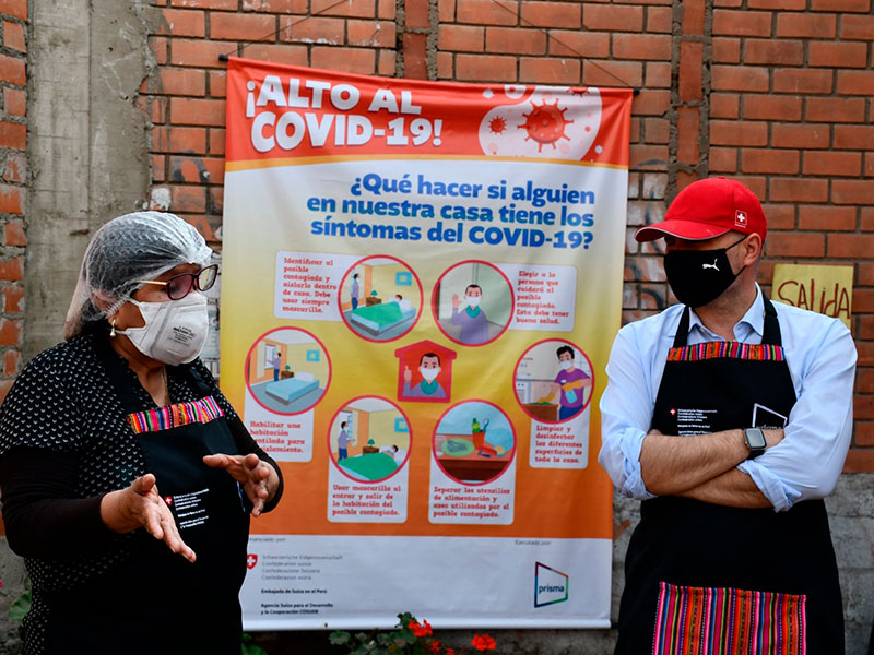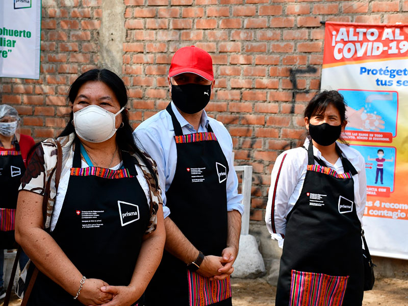 En la visita realizada el 27 de noviembre a dos de los cuatro comedores populares participantes en el proyecto “Mi comedor favorito”, el Jefe de Cooperación de COSUDE, Martin Jaggi, observó los resultados obtenidos en las medidas implementadas para la mejora de la atención a comensales y prevención frente al COVID -19, como parte de las actividades del cierre del proyecto financiado por la Cooperación Internacional de Suiza – COSUDE y ejecutado por Prisma ONG.