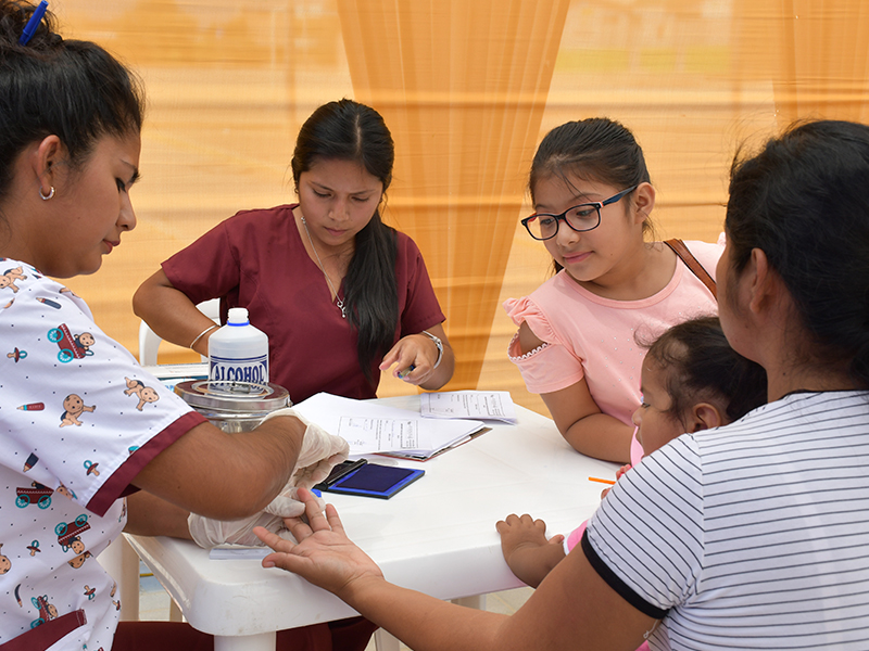 Dentro de los componentes y estrategias más participativas, coloridas y festivas se encuentran las ferias de salud, actividades donde las familias aprenden participando de un espacio de recreación y mucho conocimiento. Estas ferias tienen módulos de sesiones de aprendizaje, de atención especializada en salud para detectar casos de anemia, orientación, juegos educativos, activaciones, presentación de obras de teatro comunitario, música, alegría y mucho color.