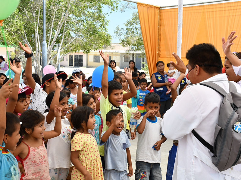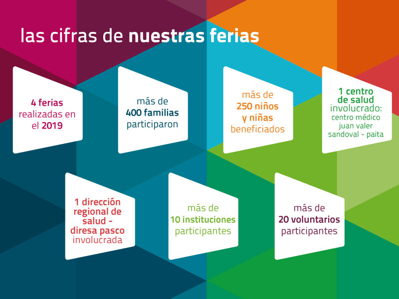 Las ferias de salud se organizan en espacios públicos y congregan a gran cantidad de familias, así, en los últimos dos meses, se han desarrollado cuatro ferias en Paita y Pasco, en las que han participado más de 350 familias con niños menores de tres años. Esta importante actividad siempre es coordinada con el establecimiento de salud de la zona, líderes comunales y actores locales.