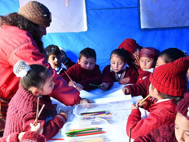 - Niños y niñas felices participando de las ferias en Pasco.
