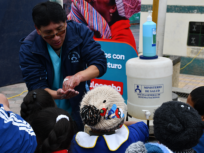 - En las ferias de Pasco se realizaron demostraciones del correcto lavado de mano.
