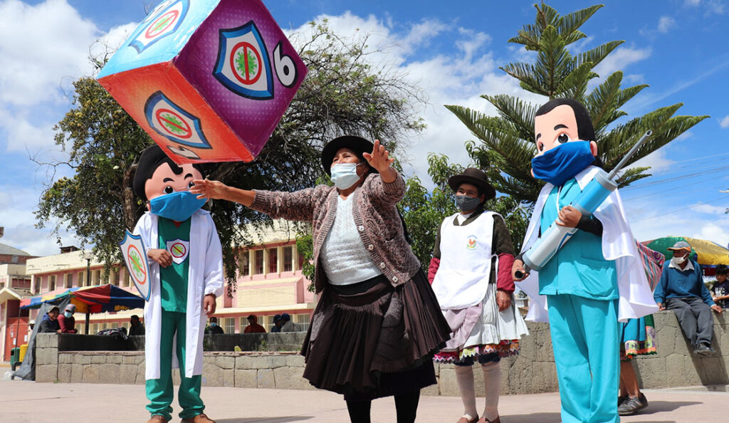 En coordinación con la Dirección Regional de Salud (Diresa), el proyecto ha preparado materiales como cartillas, canciones y audios en quechua, el idioma natal de la población; e incluso, ha desarrollado una actividad, con actuación, música y baile, que informaba e invitaba a las personas para que vayan a vacunarse.