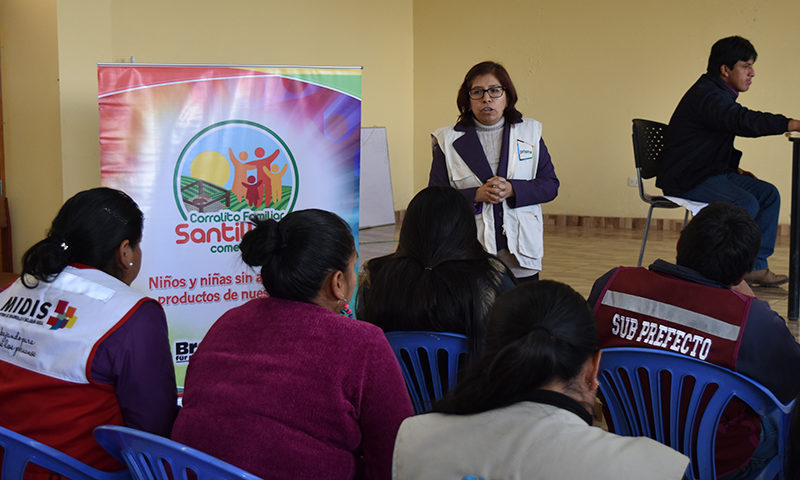 Representantes del MIDIS, Municipalidad de Santillana, Policía Nacional, Centro de Salud, II. EE., Programa Nacional Cuna Más y de la JASS (Junta Administradora de Servicios de Saneamiento) por la comunidad, se dieron cita en el taller “Generando la transectorialidad en la lucha contra la desnutrición y la anemia” con el objetivo fortalecer la articulación y el trabajo intersectorial en el distrito Santillana (Ayacucho), para disminuir la desnutrición crónica y anemia en niños y niñas menos de tres años.