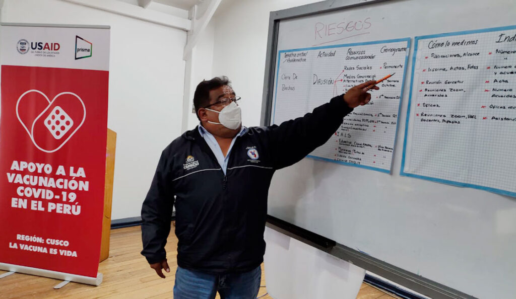 Estrategias de comunicación para facilitar el proceso de vacunación contra la COVID-19 es lo que la Gerencia Regional de Salud de Cusco y Prisma ONG con el apoyo de la Agencia de los Estados Unidos para el Desarrollo Internacional (USAID), vienen impulsando y fortaleciendo en la región a través de un trabajo de desarrollo de capacidades, articulación y asistencia técnica especializada para garantizar que la población acceda a información de calidad y oportuna en relación a las vacunas.