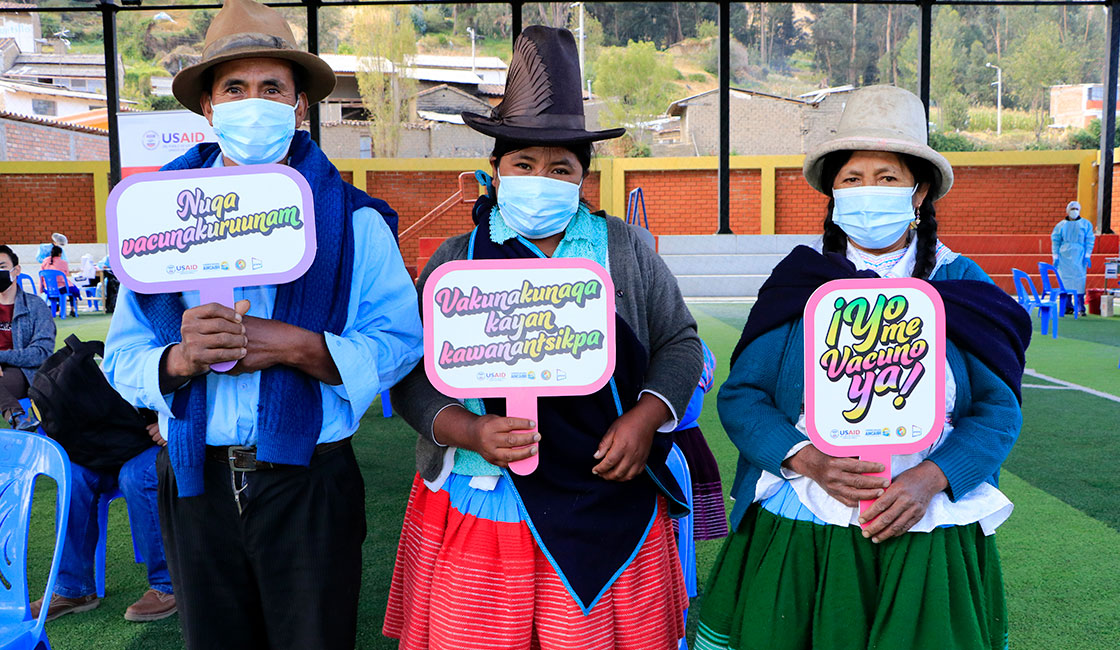 Entre otras de las acciones desarrolladas por el proyecto en Ancash, se contribuyó sensibilizando también a actores sociales y líderes de la comunidad para poder realizarse la vacunación dentro de sus comunidades. “Para esto, se implementó la difusión de spots radiales, cartillas informativas sobre las vacunas y mitos como memoria ayuda para los líderes de la comunidad”, señaló Leyla Azaña, técnica regional del proyecto. Estas acciones contribuyeron a las acciones del gobierno local, el cual exhortó a la población ancashina a vacunarse con las dos dosis para que estén protegidos.