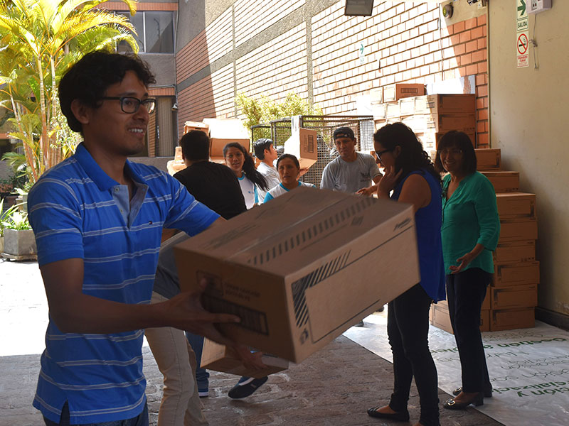 Nuestros voluntarios en Piura ayudando con las donaciones.